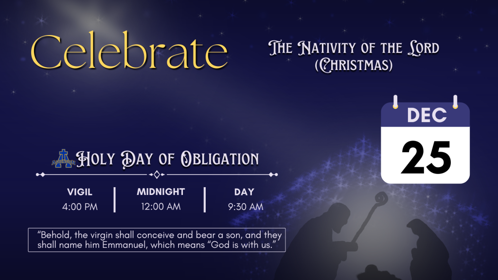 We pray the rosary 20 minutes before weekend Masses and at 7:45 AM on weekdays.